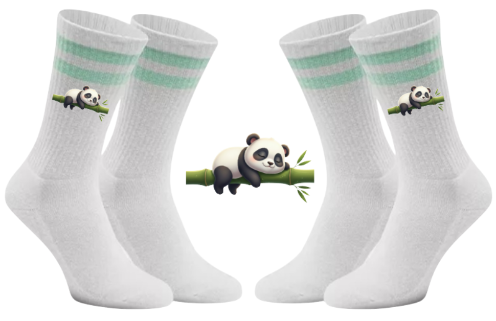 Suchst du nach dem perfekten Begleiter für deine Füße? Dann sind unsere Panda-Crew-Socken genau das Richtige für dich! Egal, ob du gerade auf dem Sofa entspannst oder deinem Outfit einen verspielten Touch verleihen willst – dieser kleine schlafende Panda auf seinem Bambuszweig bringt sofort gute Laune in deinen Alltag.