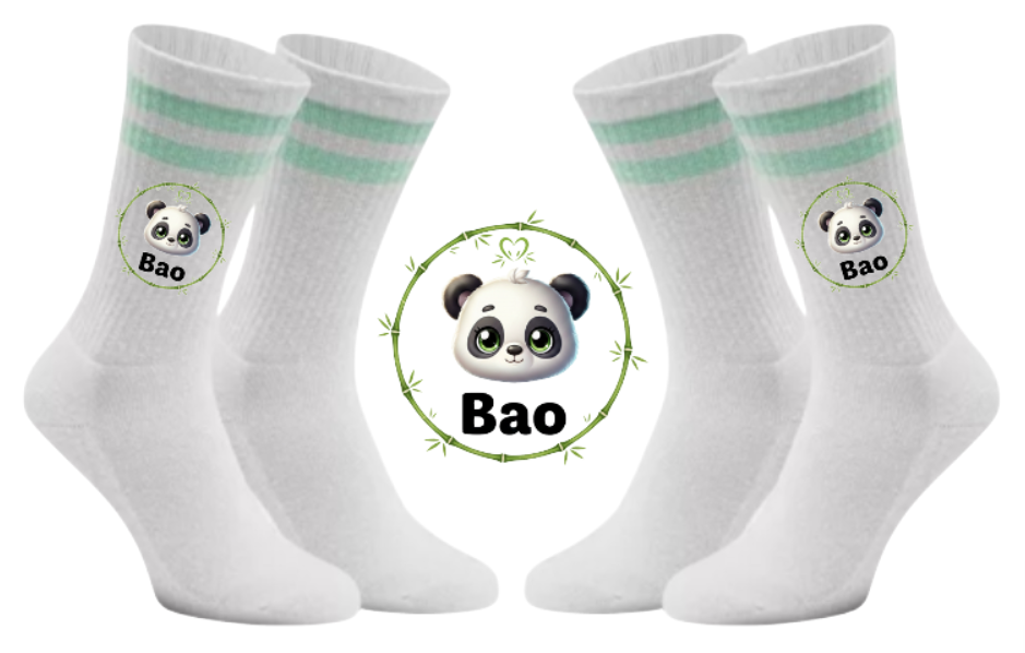 Ob in sanftem Mint, klassischem Schwarz oder schlichtem Weiß – Bao begleitet dich überallhin. Diese Socken sind auch das ideale Geschenk für alle Panda-Fans und die, die es noch werden wollen.
