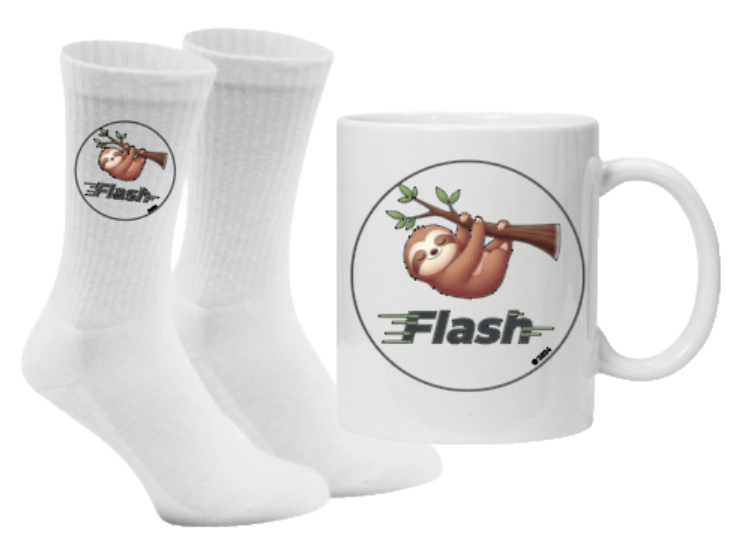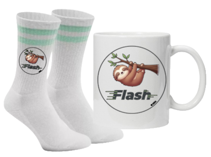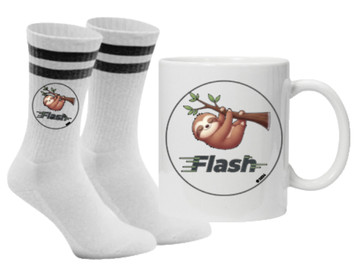 Wähle deine Lieblingsfarbe für die Socken, such dir deine Größe aus und mach dich bereit für das nächste Level an Niedlichkeit. Schnapp dir das Flash-Fan-Starterkit und zeig der Welt, dass du Teil der gemütlichsten Community der Welt bist! Flash on! 🦥✨☕️