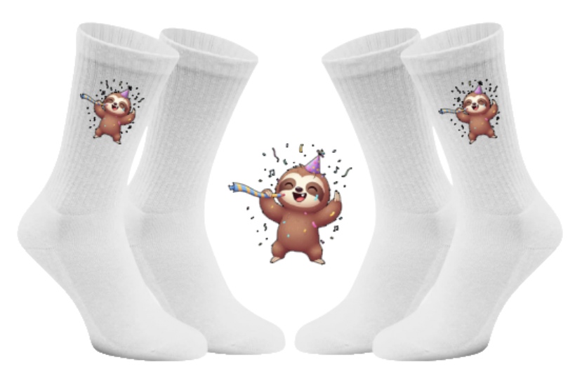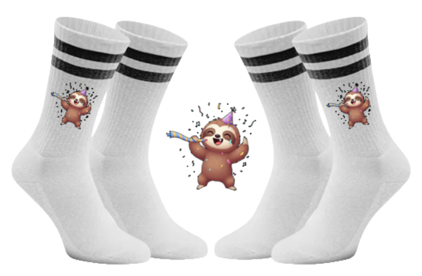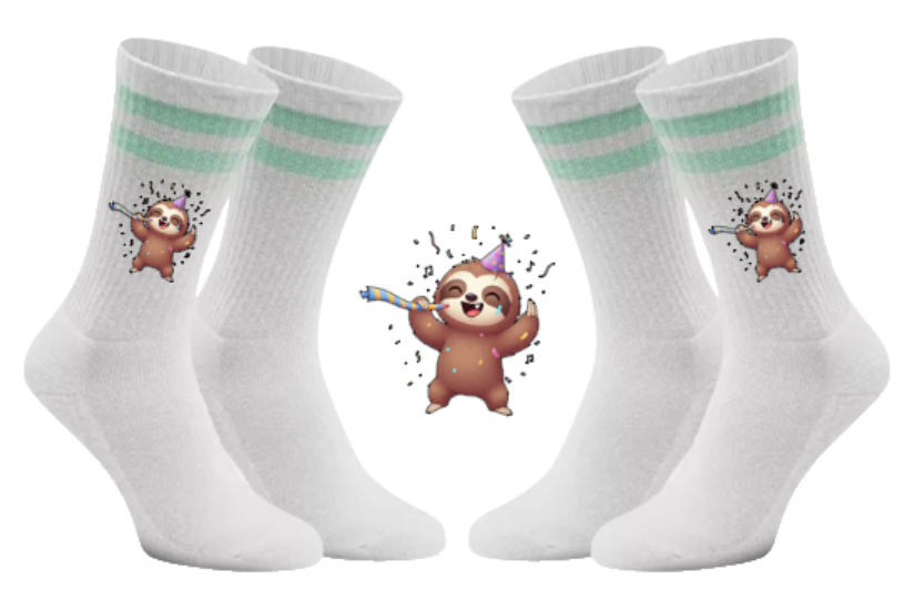 • Die Gute-Laune-Socken: Klassische Tennissocken, die selbst den grauesten Montag in eine Tanzfläche verwandeln. Erhältlich in Weiß, Schwarz oder Mint und in 4 verschiedenen Größen. Wer braucht schon Tanzschuhe, wenn er Flash-Socken hat? 🦥🧦