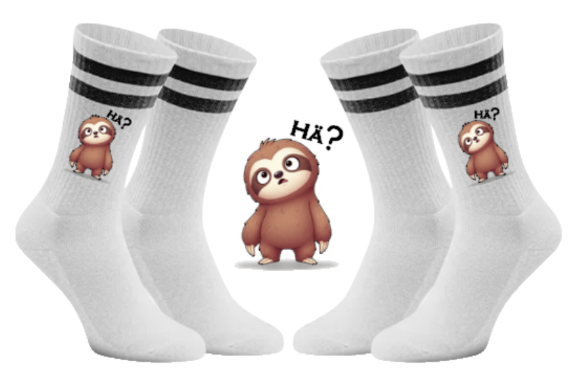 Der Aufdruck wird mittels Sublimationsdruck auf die Tennissocken gedruckt. Damit dieser lange schön bleibt, empfehle ich dir die Socken bei 30°C zu waschen und nicht im Trockner zu trocknen.