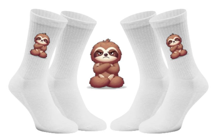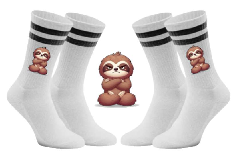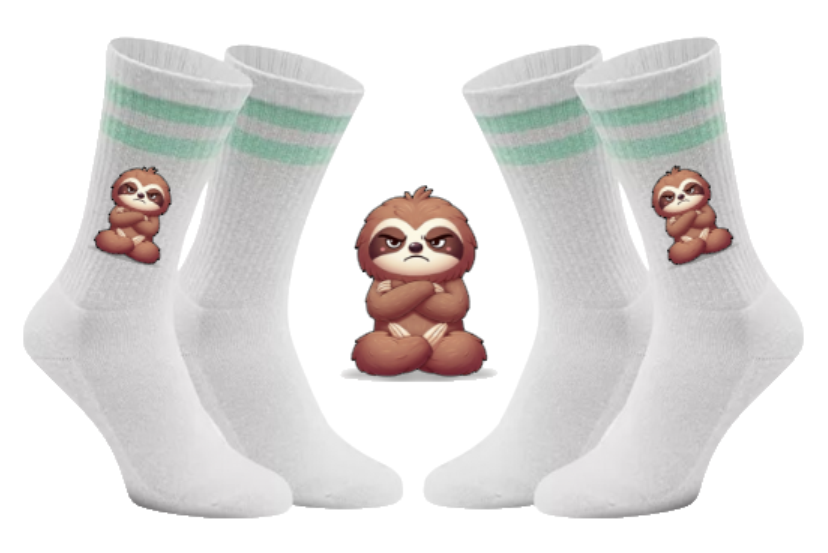 Warum nur im Gesicht grummeln, wenn deine Füße das Statement direkt mitliefern können? Mit unseren Grummel-Flash Tennissocken zeigst du der Welt bei jedem Schritt, was du von früher Stunde oder unnötiger Hektik hältst. Unser Faultier Flash ist auf diesen Socken in seiner ehrlichsten Form verewigt: absolut grummelig und ungeschönt. 😤👟