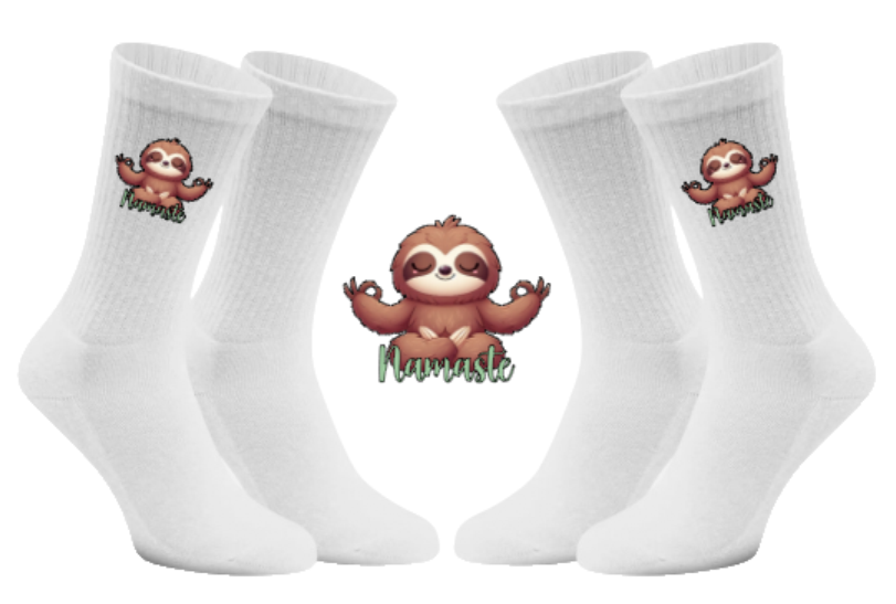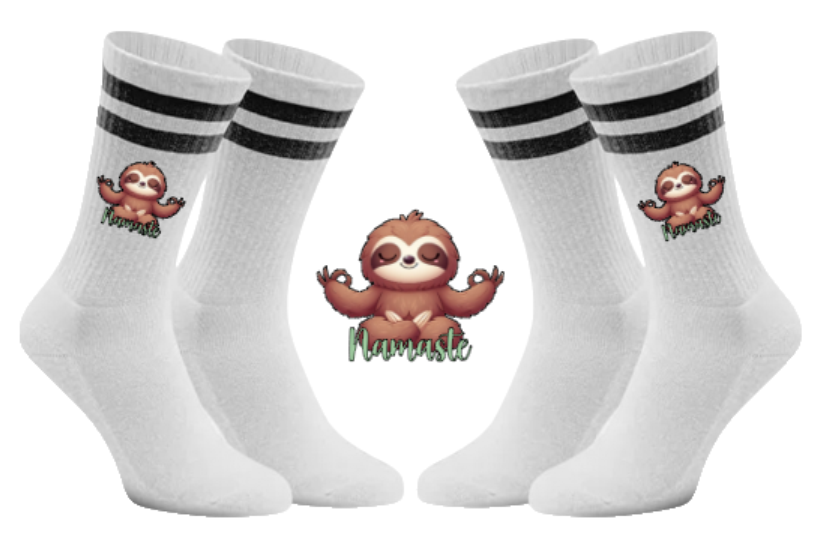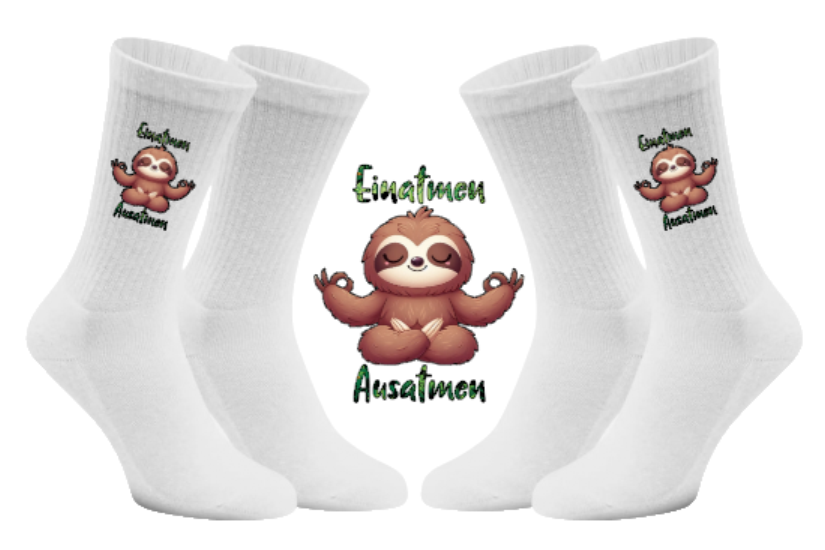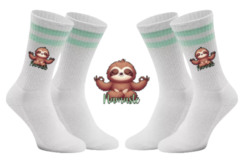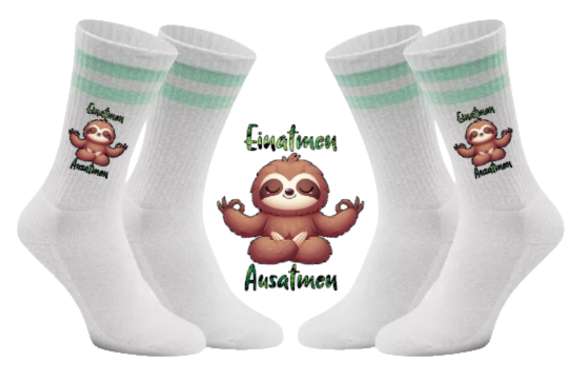 Warum Stress verbreiten, wenn man Gelassenheit tragen kann? Mit unseren Meditierender Flash Tennissocken bringst du die nötige Ruhe in deinen Alltag – egal wie hektisch es um dich herum zugeht. Unser Faultier Flash zeigt dir direkt auf deinen Socken, wie man die Balance hält und einfach mal tief durchatmet. 🌿🧦